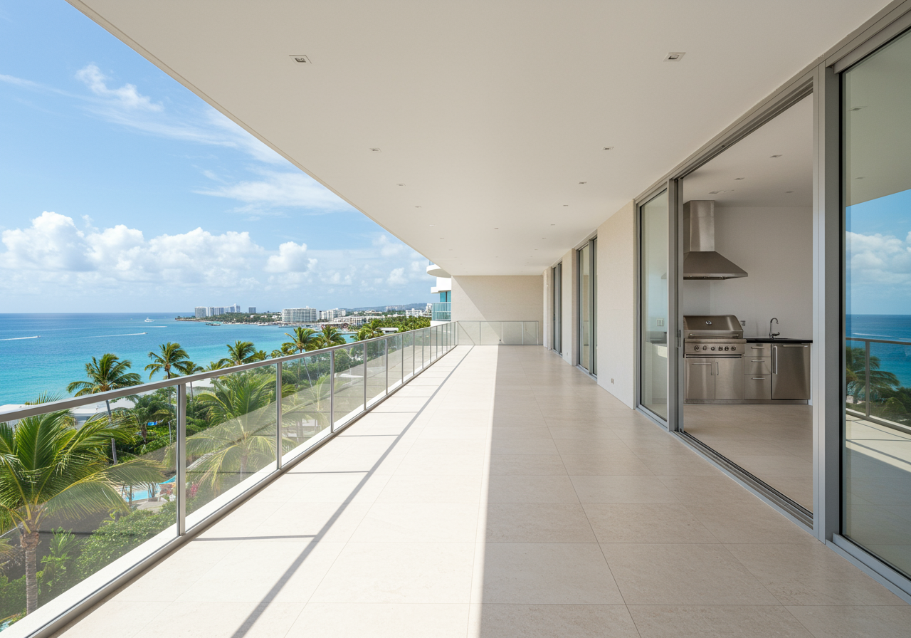 White limestone floors and custom lacquer taupe kitchen with chef’s quality appliances set a serene tone in the coveted South of Fifth location. The residence’s heavenly master suite consists of a spacious bedroom, spa-like bathroom with spacious dual vanities and a sunken soaking tub. Two additional bedrooms, bathrooms and a den provide ample room for friends, family, and guests to relax.