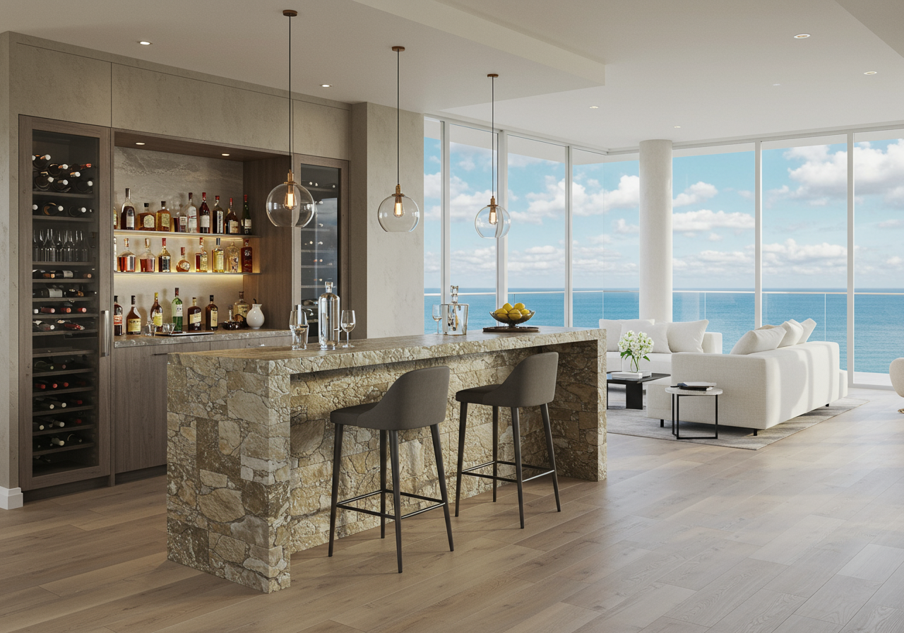 This oh-so-chic milk and honey penthouse in Sunny Isles is more than a place to call home – the unit occupying the top 3 floors of the stunning beachfront Regalia building features a master bathroom like no other.