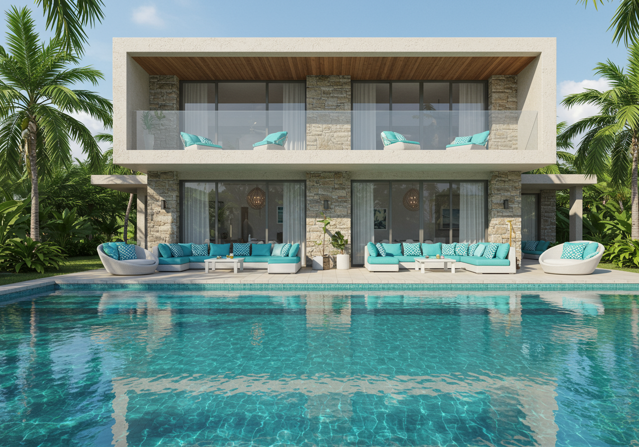 The mansion features chef and prep kitchens, a movie theater, second-floor master suite, an infinity edge marble pool and Jacuzzi, a summer kitchen and cabana, a guest house and a rooftop lounge. The smart home was completed on a 0.7-acre lot last year.