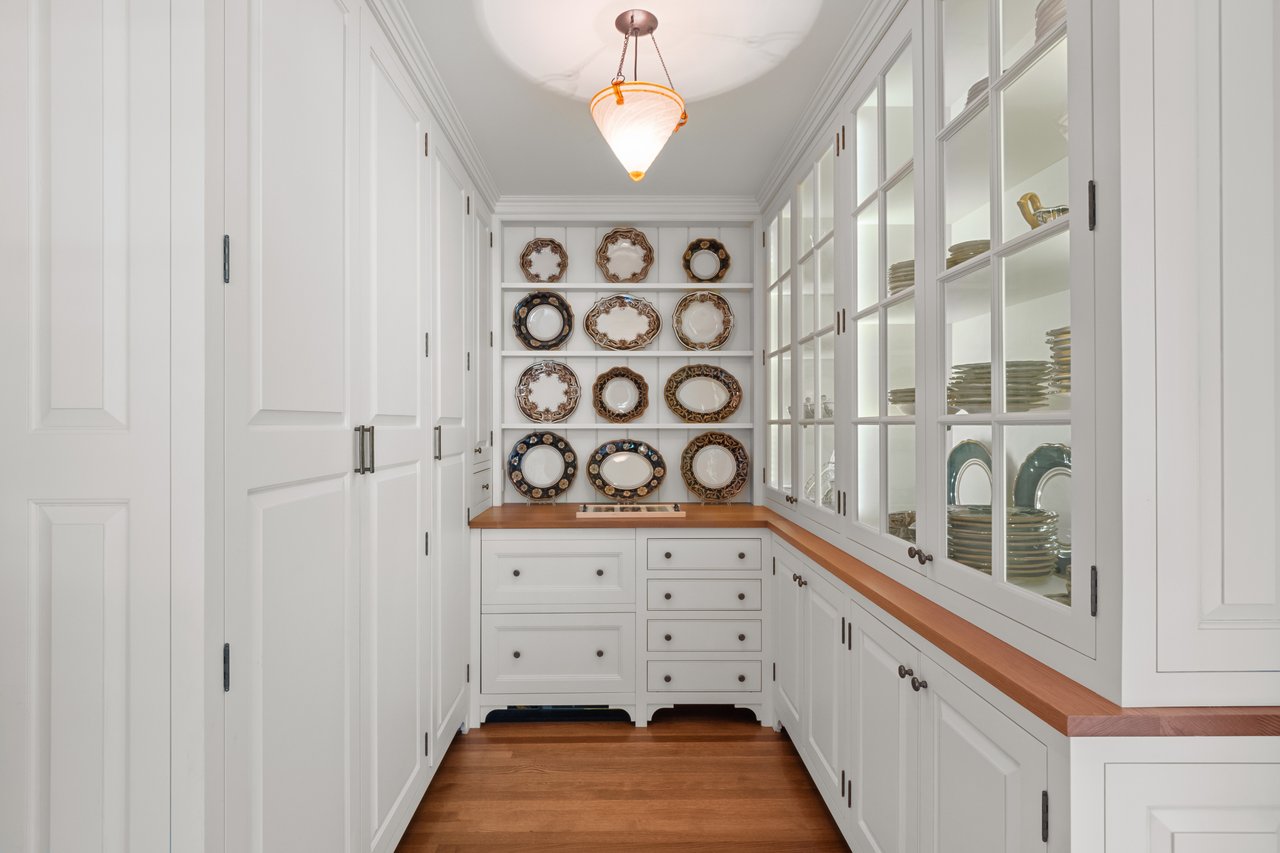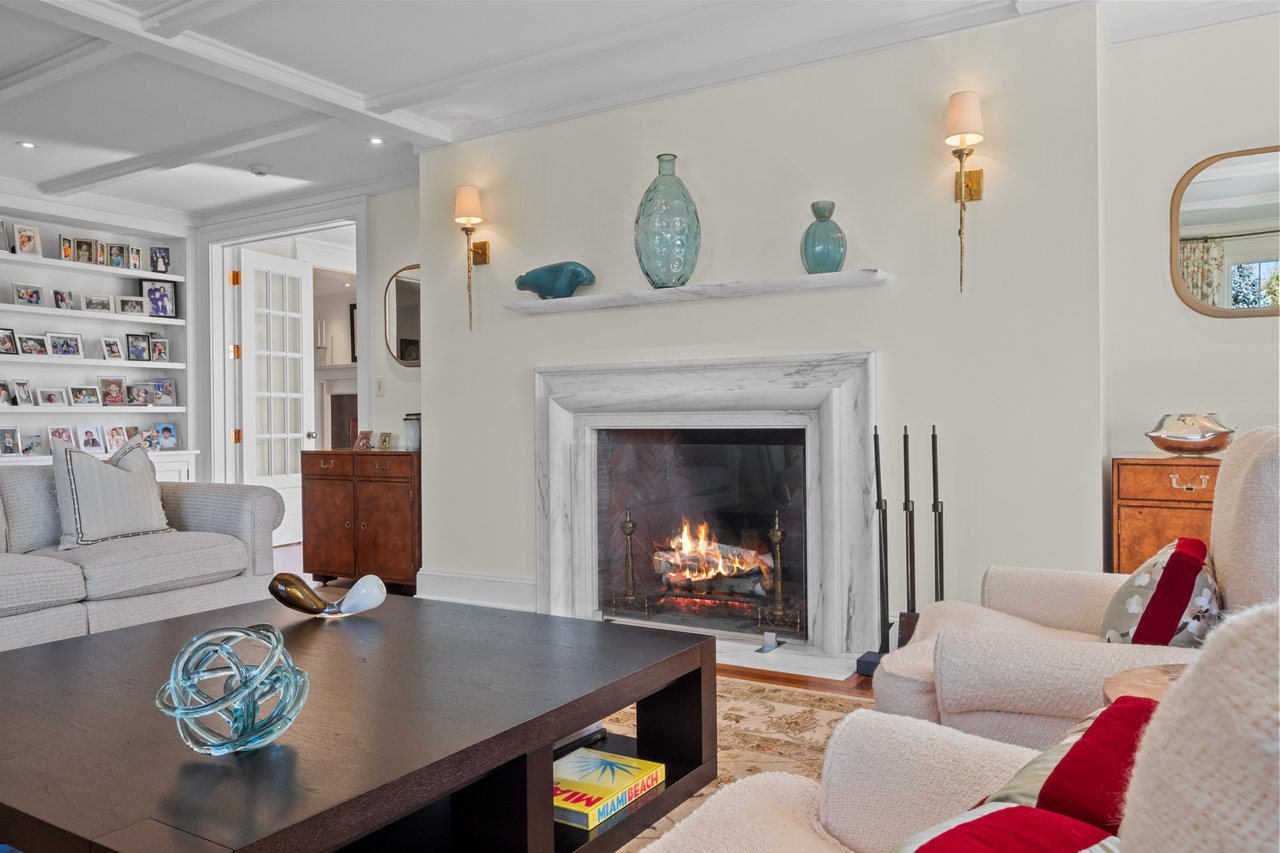 The pool house is a retreat unto itself. With a heated gunite infinity pool and attached spa, a full bathroom, and a large wood-burning fireplace, it’s built for summer days and starlit evenings. Whether hosting a cocktail party or enjoying a peaceful morning swim, this luxurious addition completes the estate’s resort-like feel.