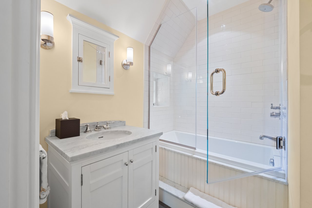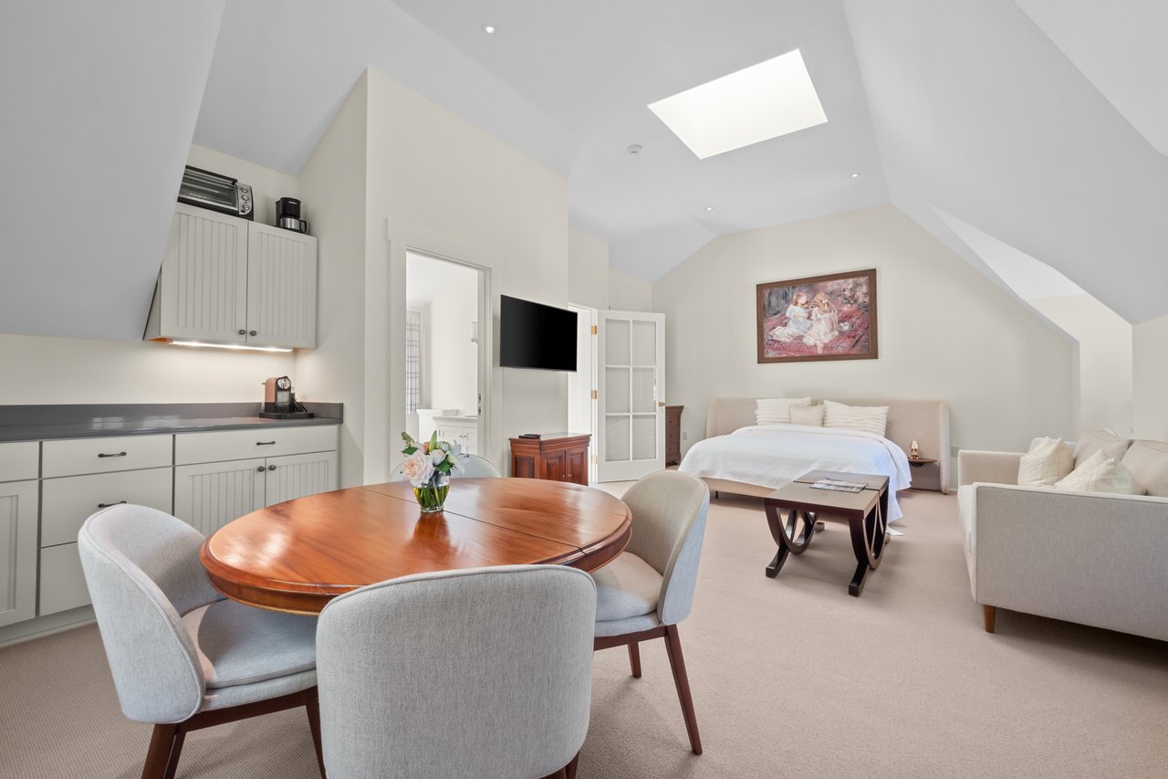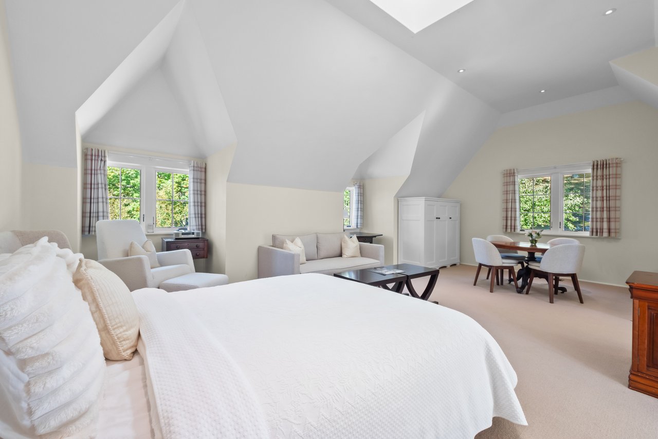 The first structure you see upon entering the estate is the beautifully proportioned Guest House—a stone-clad English cottage straight out of a fairytale. Bathed in natural light, this romantic retreat features:
