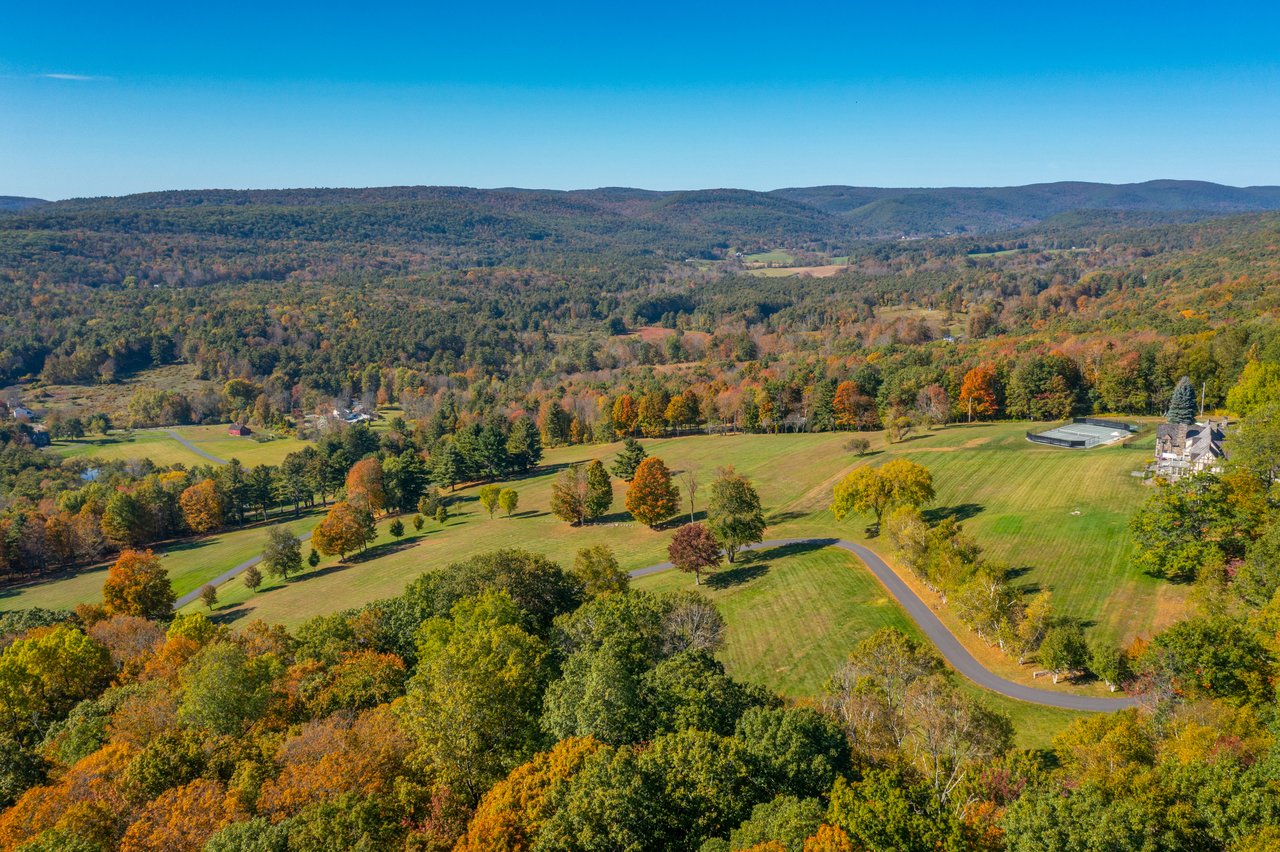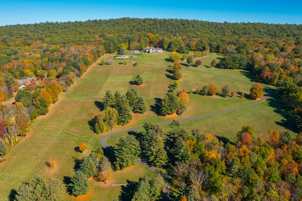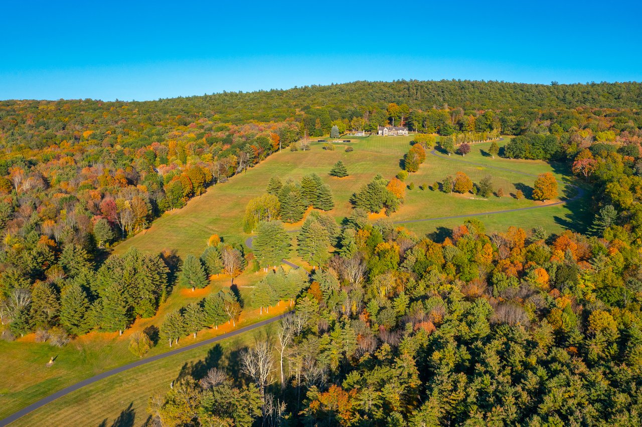 From the moment you turn off the main road, you're transported. A private, mile-long driveway winds its way through open fields and mature forest, creating a grand approach to this secluded estate. Along the way, views of wildflower meadows, grazing deer, and the distant Berkshire hills unfold before you, setting the tone for something truly special.