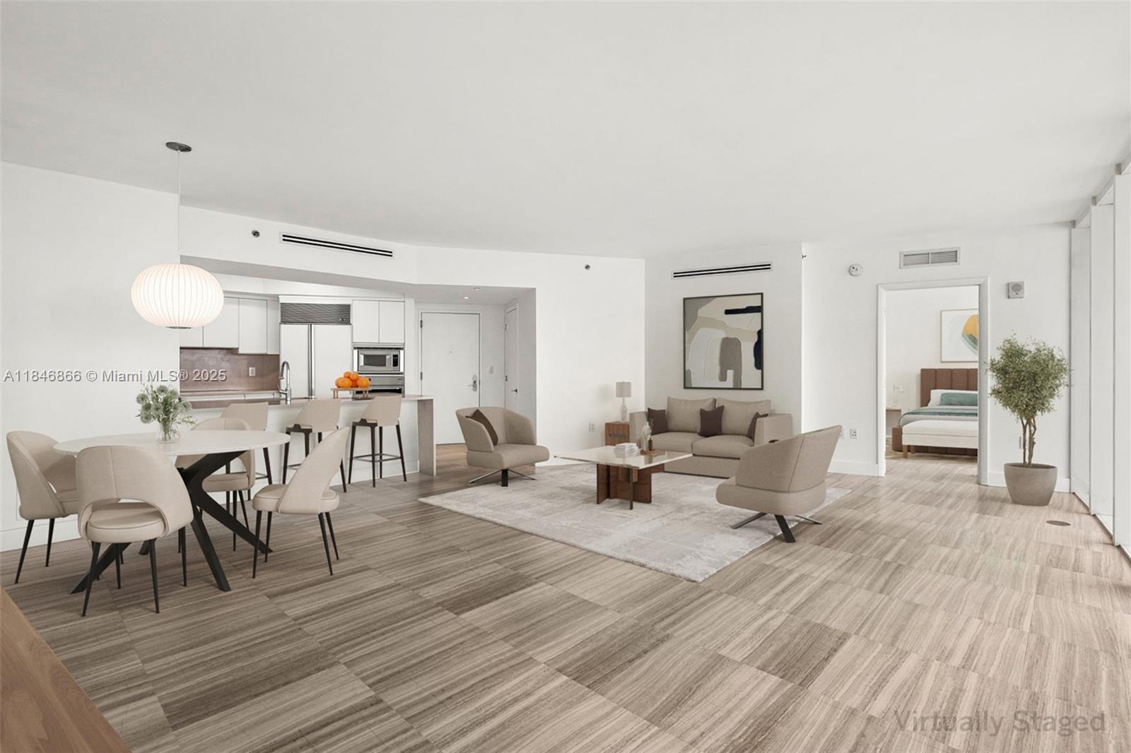 Experience one of the most desirable lines at Murano Grande, located in South Beach's exclusive South of Fifth neighborhood. This fully renovated 2BR/2.5BA Miami Beach residence spans 1,600 SqFt with a spacious split-bedroom layout, ensuite baths, porcelain flooring, and an upgraded kitchen featuring Sub-Zero appliances and Miele dishwasher. The expansive southwest-facing terrace offers sweeping views of Biscayne Bay, the downtown skyline, Fisher Island, and partial ocean. Murano Grande is a premier full-service building with a bayfront pool with towel and food service, waterfront restaurant, full gym, tennis court, spa, concierge, valet, and 24-hour security. Pet-friendly, with 6-month rental minimum. Moments from the marina, beach, parks, and top dining.
